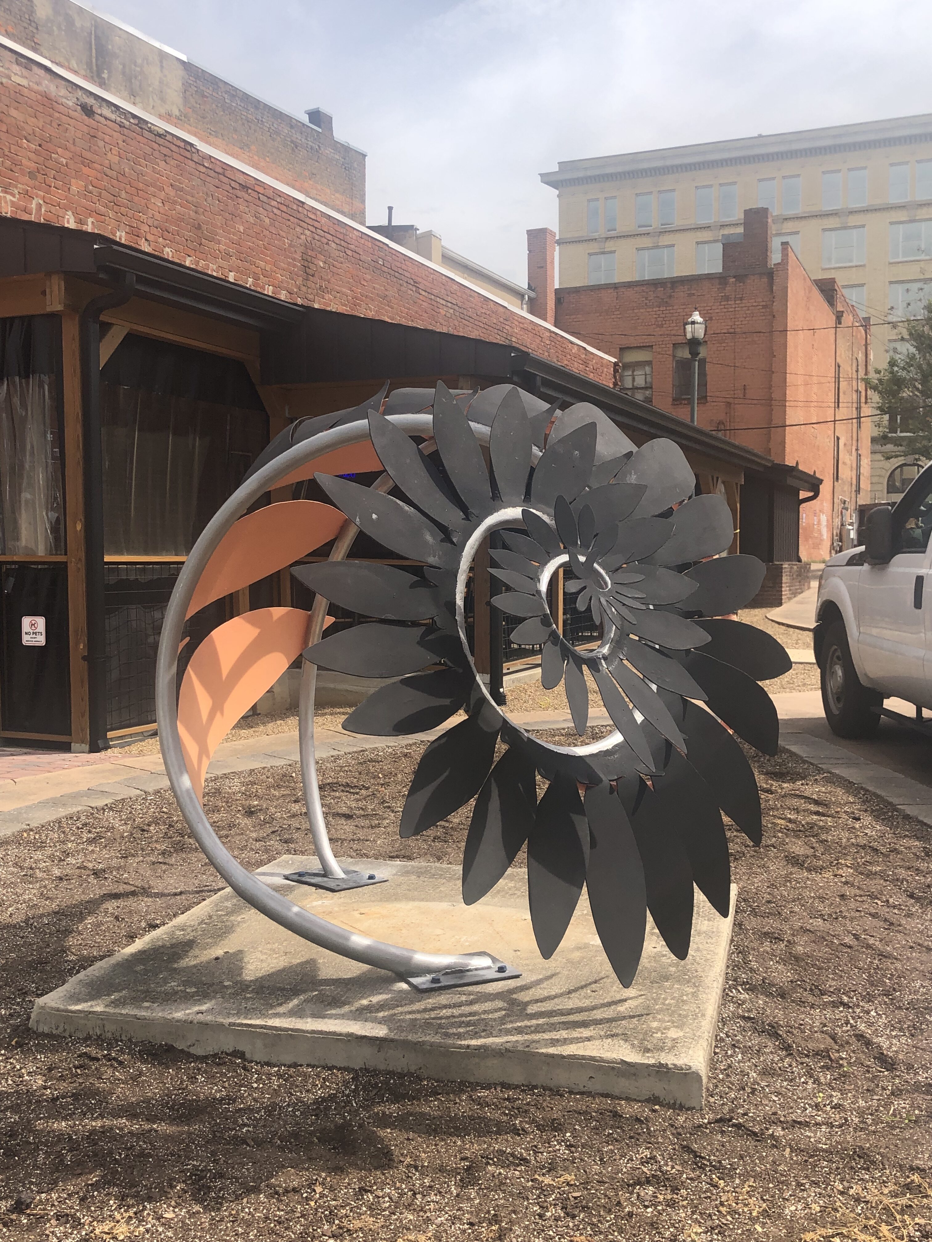Most of my work is inspired by flowers, and/ or their method of growth, from the spiraling fibonacci sequence of a fern uncurling as can be seen in this sculpture. “Dragonflower” is a floral spiral that unfurls like a dragon waking up from a nap. As you look around the piece you see different aspects of the flower or imagine the underbelly of the dragon.