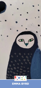 From the artist: I made this painting for my family at Christmas. It is winter with a blue owl because I love animals.