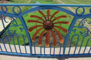 King Commons park in downtown Johnson City celebrates the native flora of our area with unique, decorative bridge rails forged by a team of artists at the Metal Museum in Memphis, Tennessee. Lewis Body, Blacksmithing Apprentice at the Metal Museum, designed the railings and led the fabrication of these art pieces. Body has worked in metal shops that specialize in architectural forged work, classic car restoration, and precision fabrication. Since he began work at the Metal Museum, Body has created an array of artworks ranging from furniture to sculptural forms. Body worked closely with Jim Masterson, Shop Foreman, and Kacy Ganley, Blacksmithing Apprentice, throughout the railing project.
