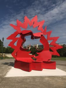 The Public Sculpture with which I am now deeply involved continued to explore the female torso in a larger than life scale. Fabricated in steel, they are celebrations expressed in dance and painted a vivid red.