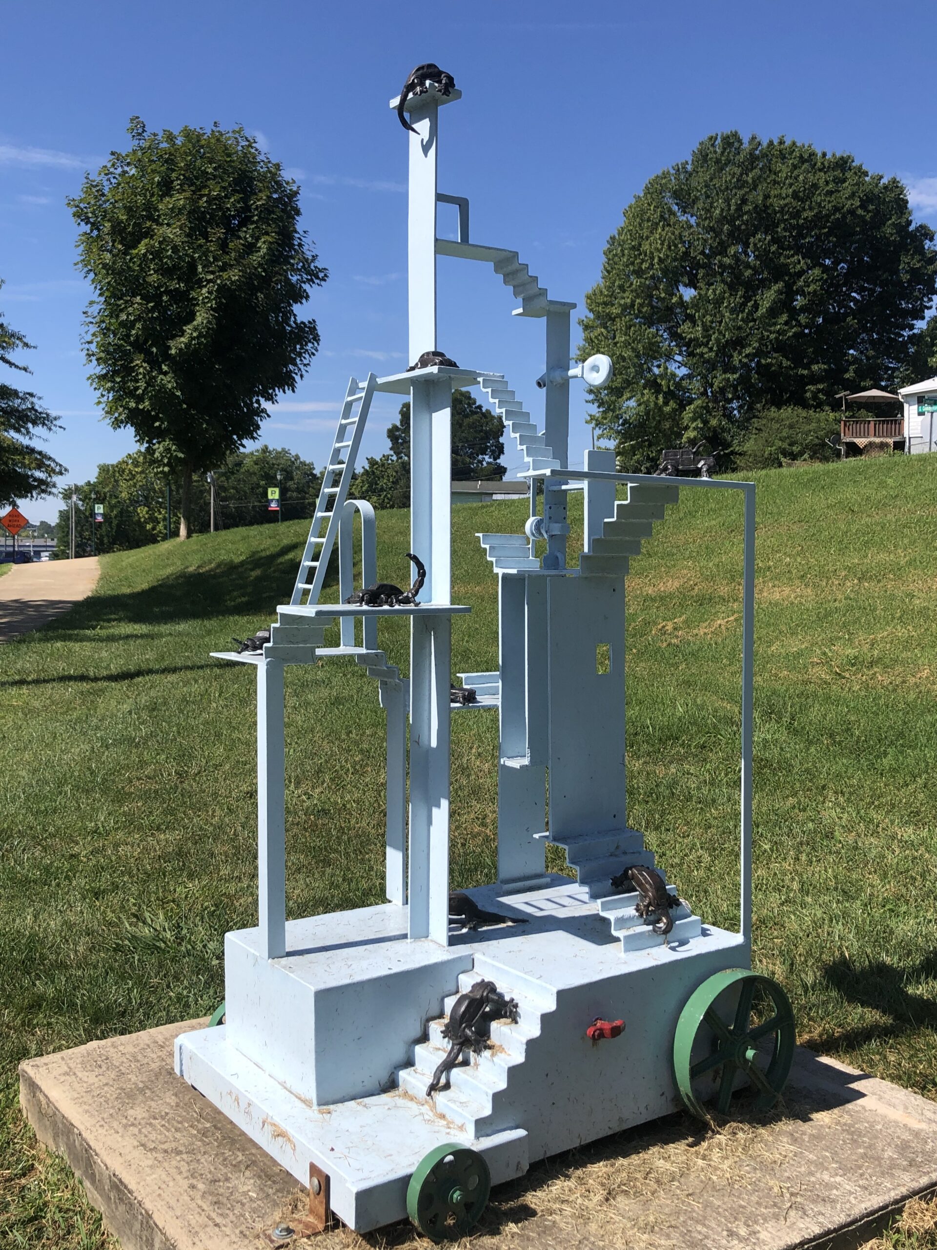 Car Monsters is a light-hearted work with dark intent, another in a series of sculptures that reflect the rapid environmental and social changes wrought by our technological civilization. Most see the automobile as a symbol of speed and power. But from the Earth’s perspective it is a monster, something wicked spawned from dark satanic mills, a shiny beast of steel and glass that devours entire ecosystems, killing and maiming billions of life forms every year.