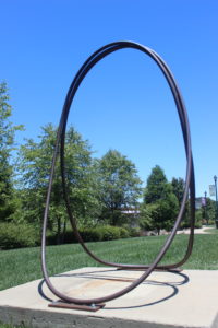 “Settle” is one of a series of exterior looping steels sculptures meant to capture those fleeting graceful moments of a descending motion. The sculptures start as smaller maquettes and are scaled up proportionally. Steel’s structural capacities make it an ideal material to capture delicate movements and give them strength and size.