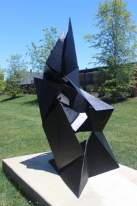 If I tell you what I see, will you see the same? No one sees the same; no understanding is the same. If meaning exists inside a work, we extract only a part. Two parts can be different—and both of them true. Visual information shows us these truth-parts: edges of steel welded together in hard and soft edges, forming objects that shift and disintegrate as you move around the sculpture. It is a metamorphism of shape, color and reflecting light. Modular surface and form assemble and reassemble in the viewer’s mind. It is sculpture you carry with you.