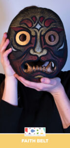 From the artist: This is one of seven masks from a series that explores how still and exaggerated expression can bring a character to life.