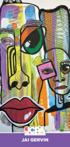 Jai Gervin Talking Head (2022) Acrylic paint, collage, and Posca Pens 12″ x 18″ Artist website: https://jgervin.com/