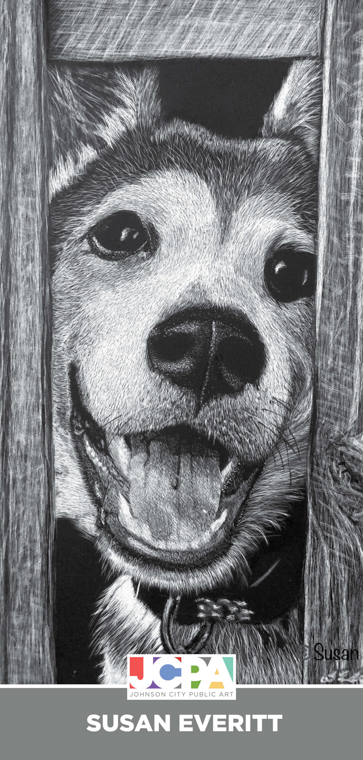 From the artist: Rocky was an abandoned pup found buried under a pile of rocks and dug out by the fire department. When Rocky went unclaimed at Animal Control, he was adopted soon after by the Fire Captain who rescued him. He had a rocky start but lives the high life now!