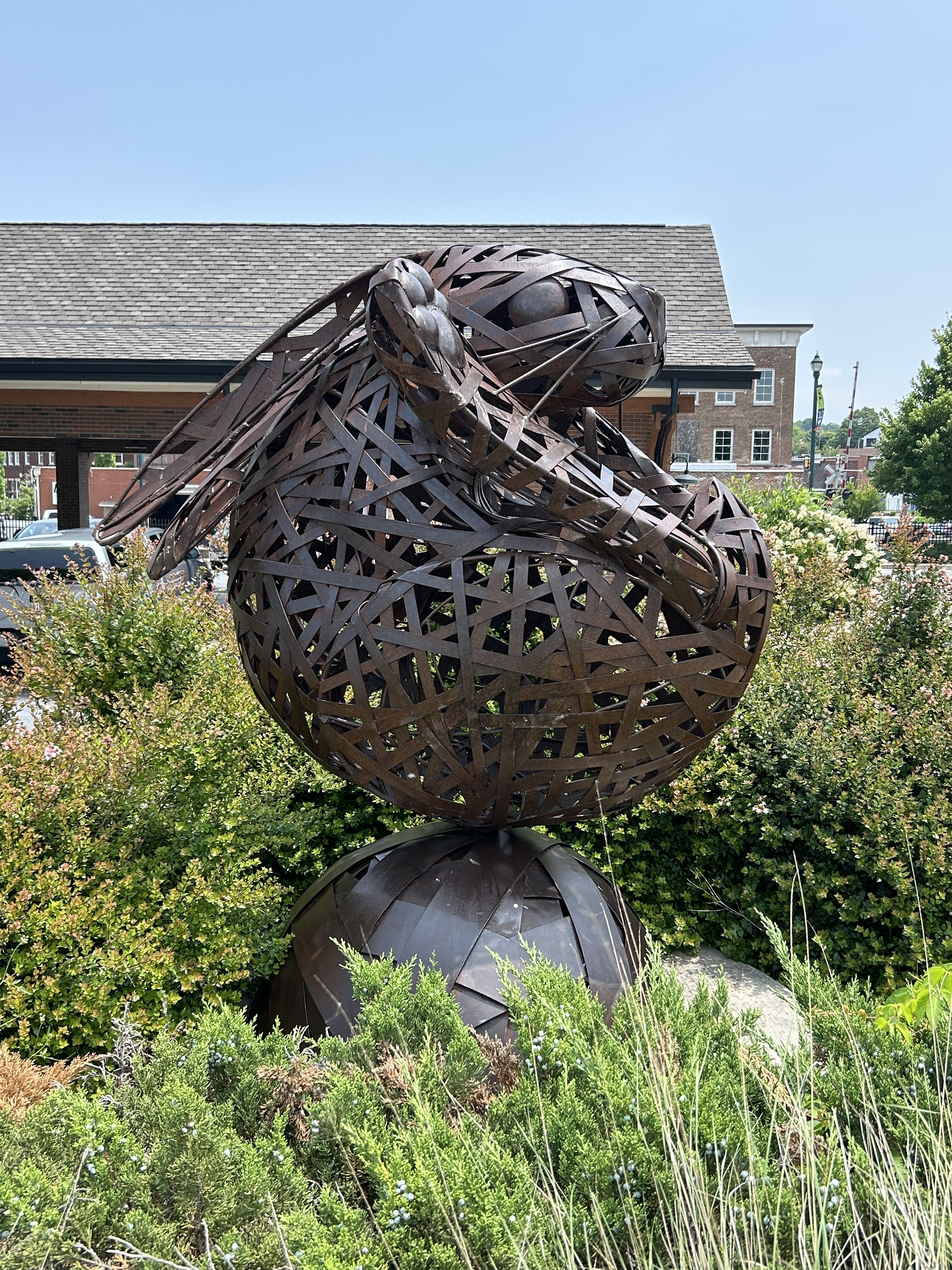 This rabbit is woven from steel remnant material. The piece is a small tribute to quiet beauty. It also represents my effort to reduce the negative environmental effects of my process.